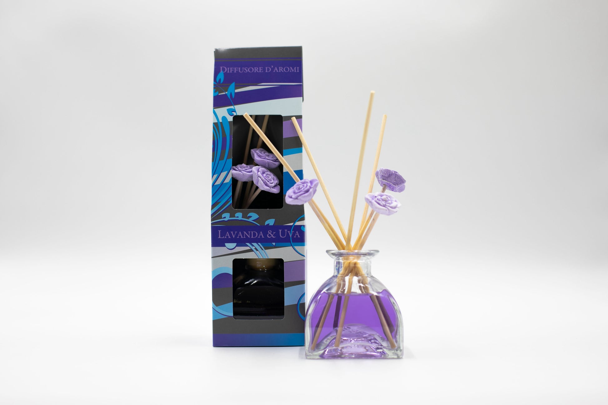 Spike of small purple flowers with a relaxing aroma combined with the scent of sweet and lovely red grapes create the harmony of distant places, recalling happy moments.