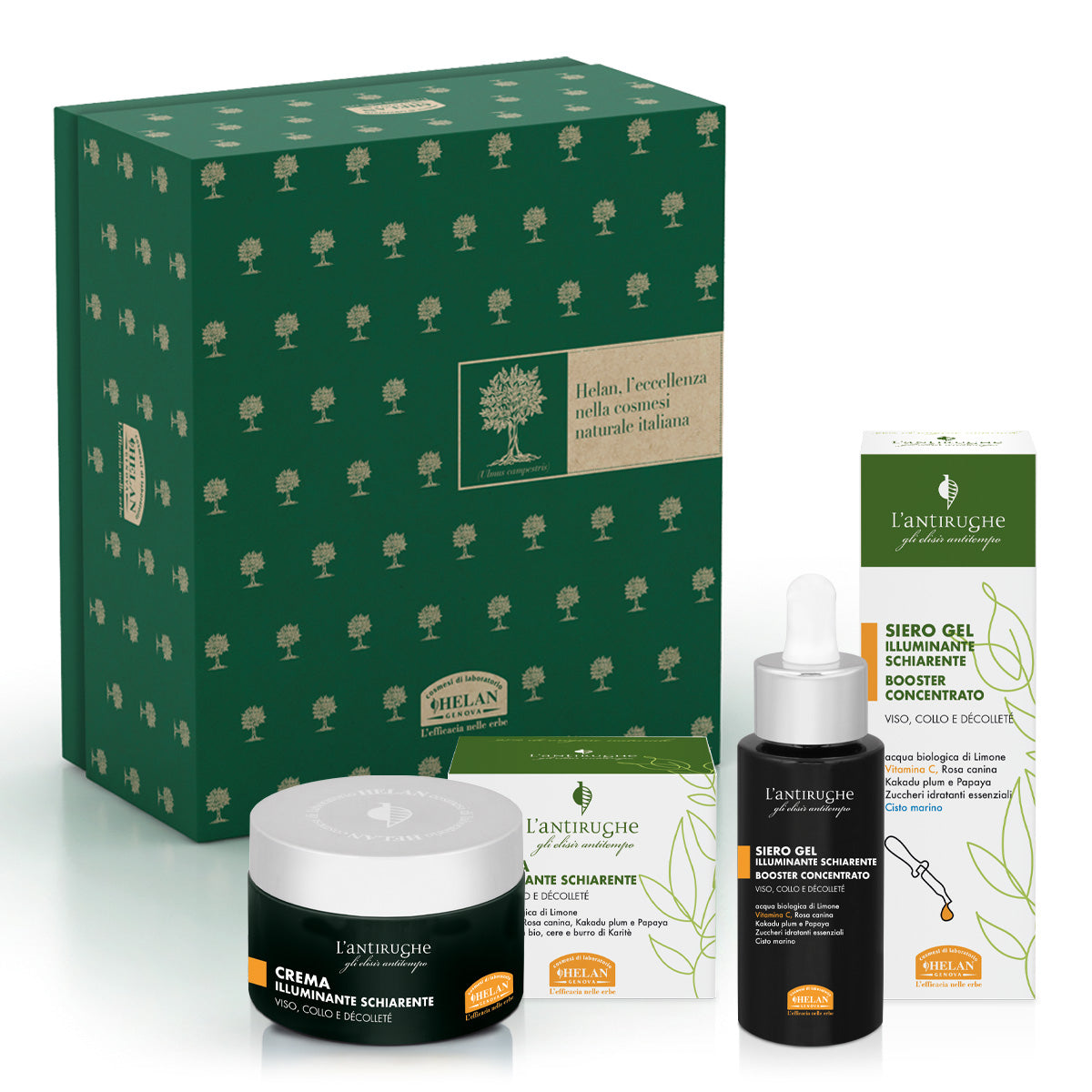 A refined gift box for a more toned and compact face. An illuminating and lightening treatment with a targeted anti-wrinkle effect thanks to the cosmetics of the Elisir Antitempo - L'Antirughe line.