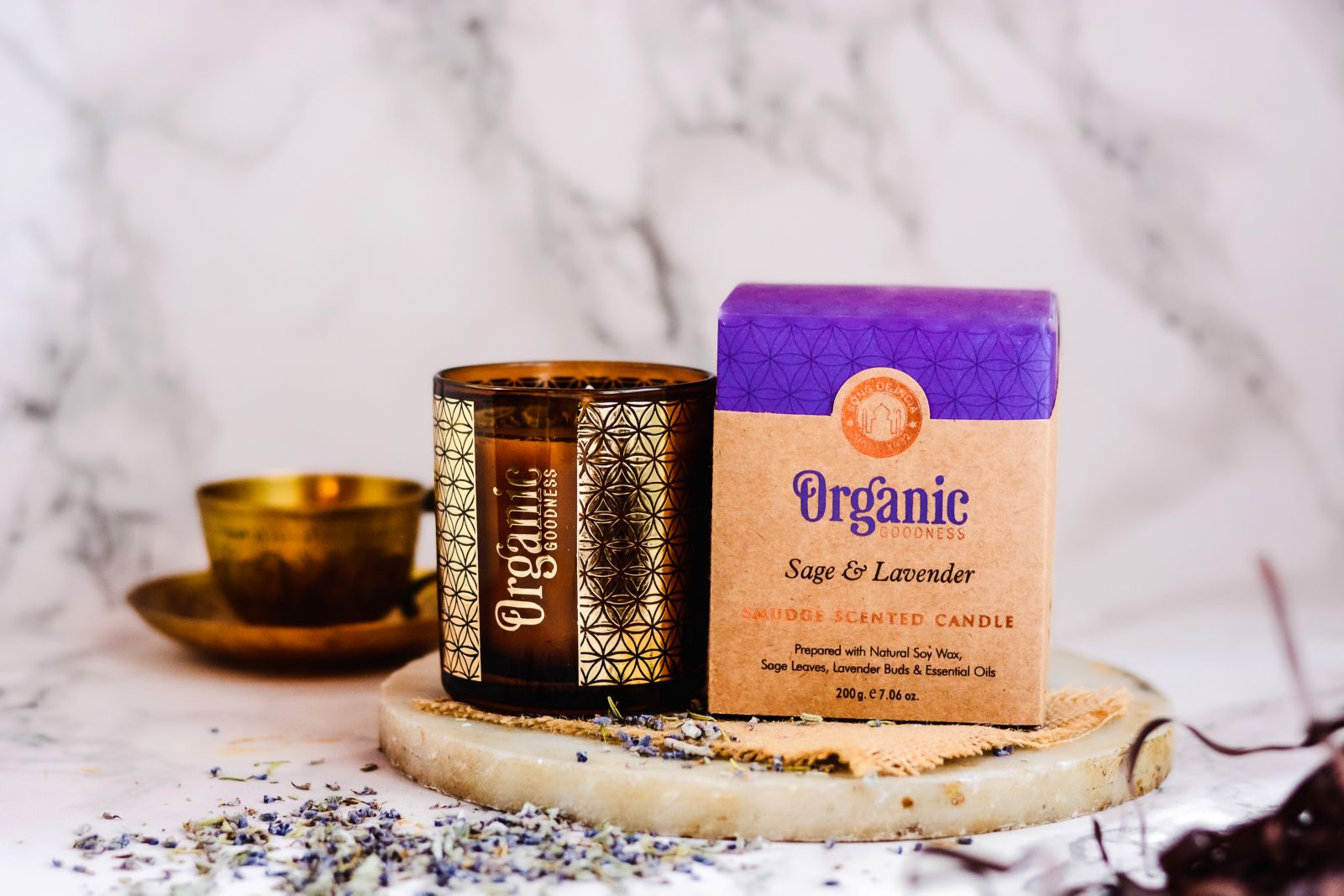 CANDELA ORGANIC IN CERA DI SOIA CON FOGLIE DI SALVIA & LAVANDA GR 200