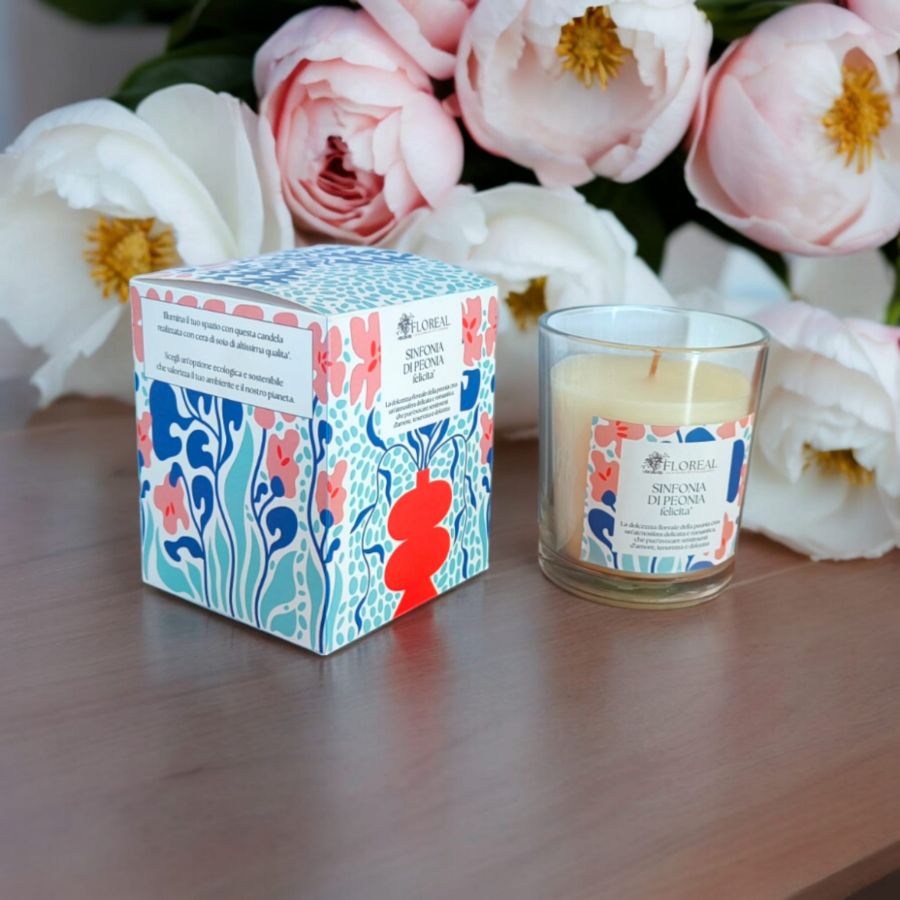 CANDELA IN CERA DI SOIA FLOREAL - FELICITA' - SINFONIA DI PEONIA GR 200 C