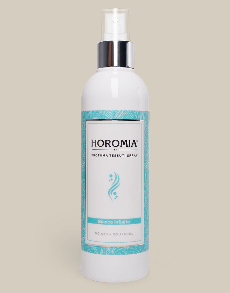 Grazie alla sua innovativa miscela studiata SENZA l’aggiunta di ALCOOL e GAS è adatta a tutti i tipi di tessuti, anche quelli più delicati come seta e cachemire, non macchia e non lascia aloni. Contiene inoltre molecole che NEUTRALIZZANO i cattivi odori. Ideale per tendaggi, interni auto, tappezzerie, e per tutto il tuo bucato. Lasciati avvolgere dalle fragranze Horomia, la tua vita sarà persuasa da emozioni profumate che non vorrai mai più lasciare.