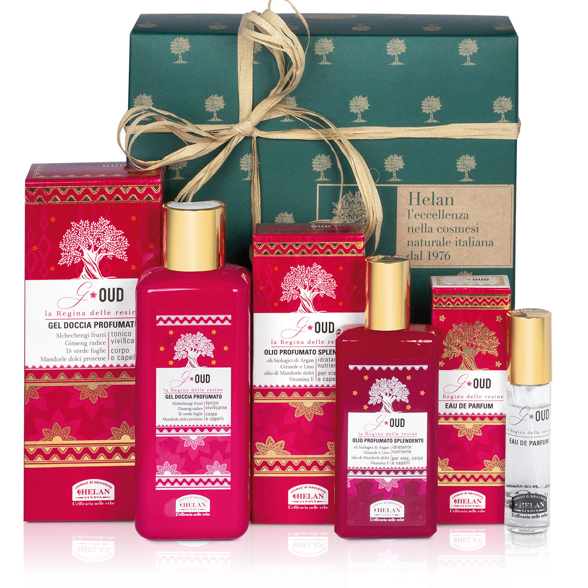 Un'elegante confezione regalo che ha come protagonista la fragranza G-Oud: una fragranza in puro stile HELAN.